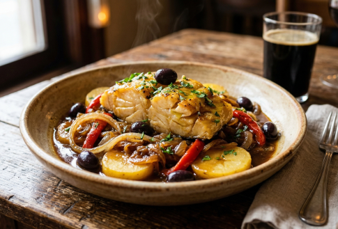 Bacalhau na cerveja escura.