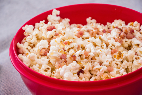 2 - Acrescente o milho e deixe cozinhar, com a panela tampada, por cerca de 3 minutos, agitando a panela ocasionalmente, até a pipoca parar de estourar.