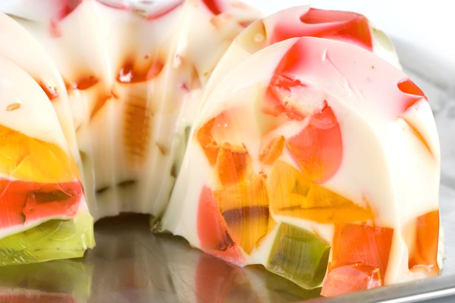 5 - Despeje sobre os cubos de gelatina e misture muito bem, delicadamente.