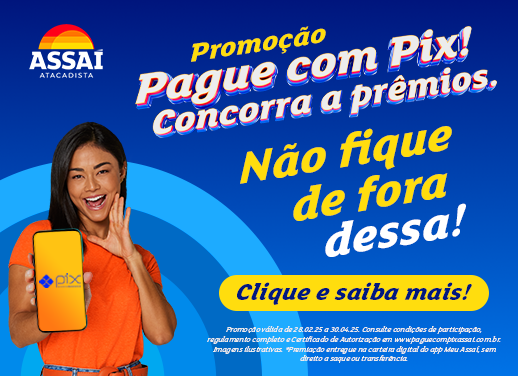 Pague no pix suas compras a partir de R$ 100 para concorrer a prêmios de R$ 50 entregues na carteira do app Meu Assaí.