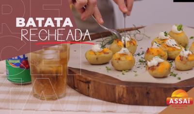 Aprenda a fazer esta receita de batata recheada com queijo e bacon