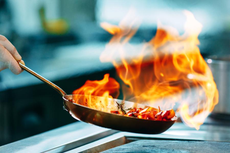 Talvez essa seja uma das técnicas para cozinhar mais impressionantes. Provavelmente, você já teve ter visto, seja em um filme ou um vídeo, o chef pegar uma frigideira e chamas subirem dela. Esse processo é usado para adicionar alguma bebida alcoólica à receita e fazer com que o álcool evapore, deixando apenas o sabor. Vamos supor que você está fritando carne e deseja um gostinho de vinho nela.