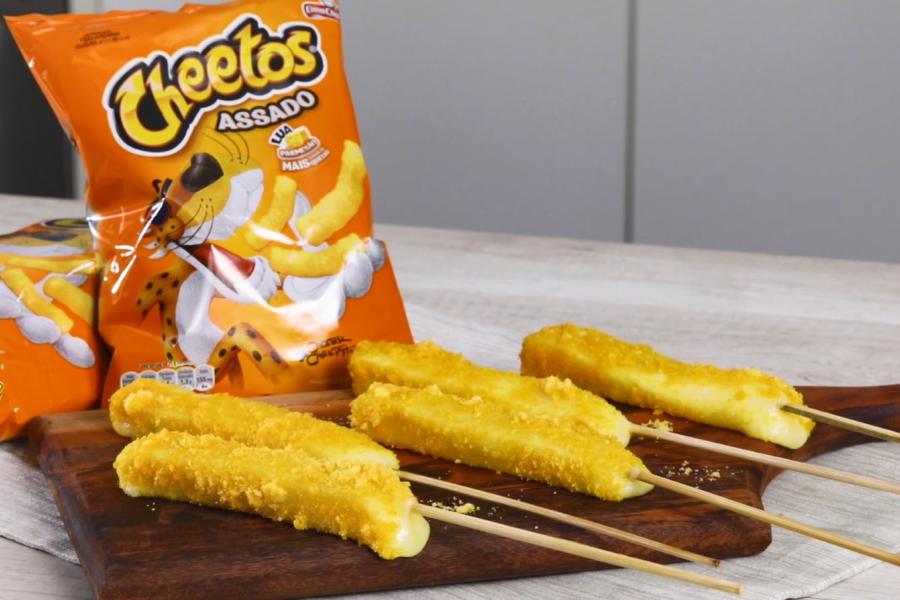 Queijo em dose dupla! Que tal experimentar esses palitinhos de queijo empanados com salgadinhos Cheetos para aproveitar a qualquer hora do dia? Só de olhar já dá água na boca!