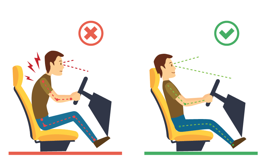 - Mantenha o encosto para as costas e pescoço próximo e pouco inclinado; isso aumenta o campo de visão