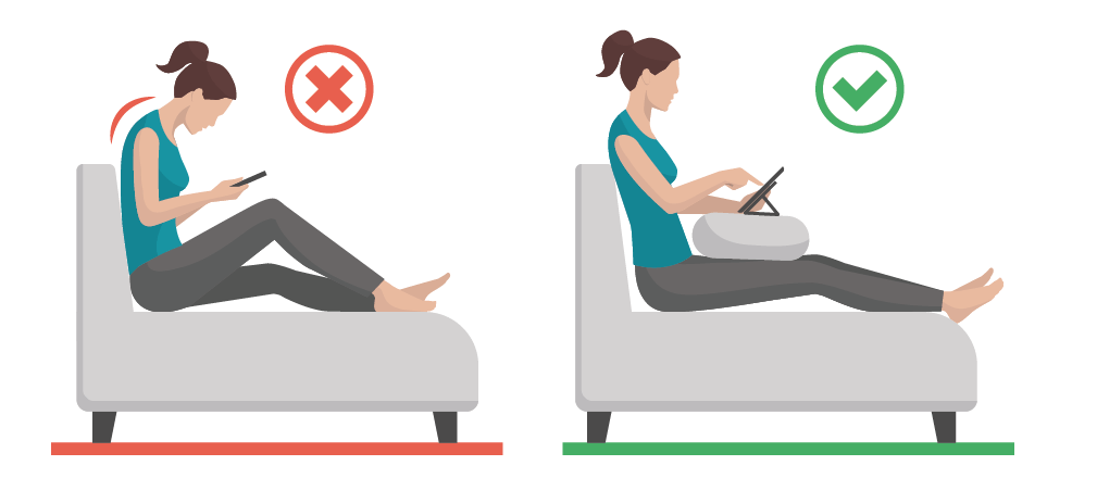 - Cuide da postura, evite curvar a cabeça e o pescoço e olhar para baixo