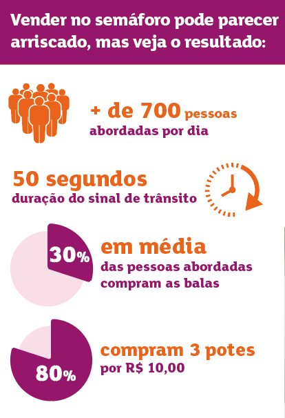“Não entendiam por que eu fazia promoção com desconto em quantidade, mas eu buscava ganhar no volume”, explica. Foram três anos vendendo balas feitas na comunidade.