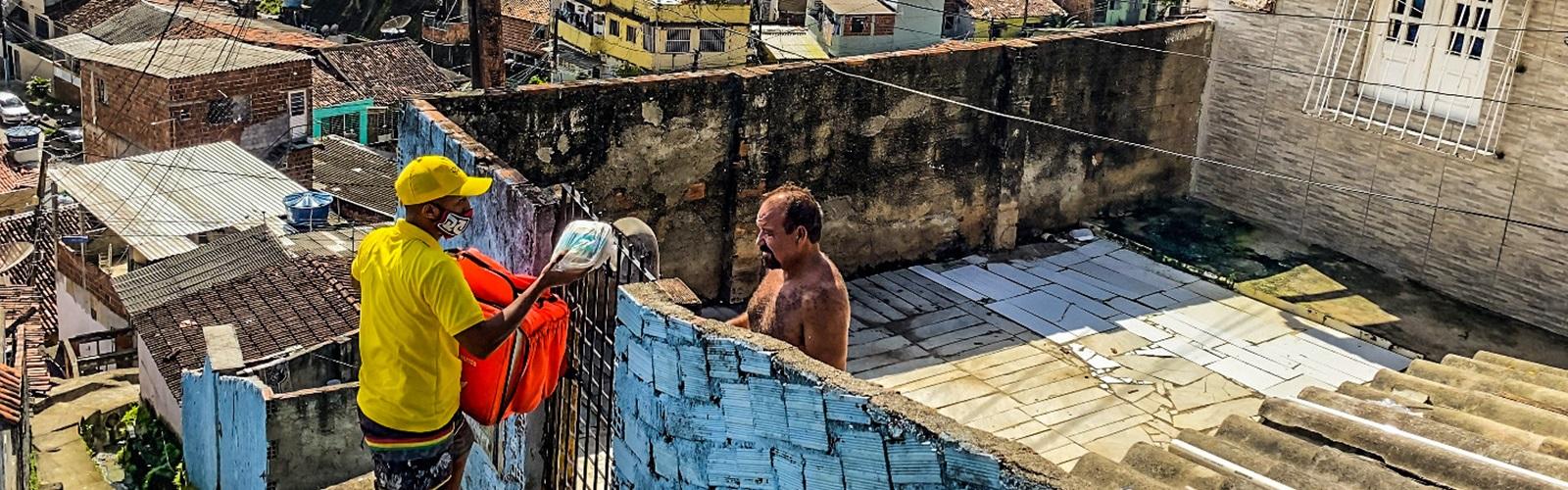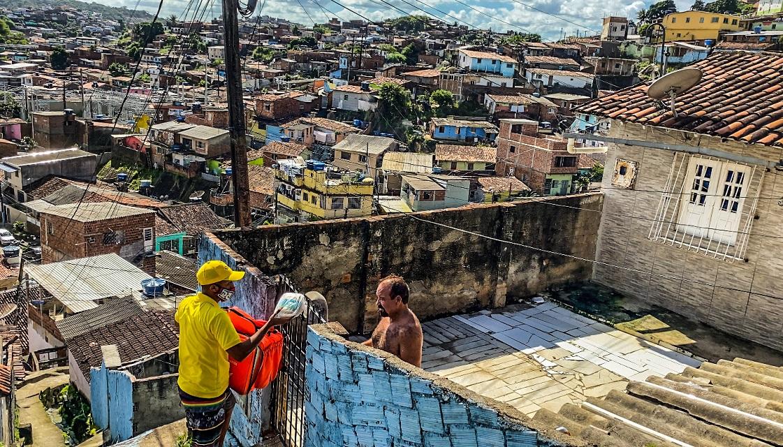 O obstáculo: nas comunidades, receber comida na porta de casa, via aplicativo, é praticamente impossível. É preciso sair de casa e ir até a esquina ou a um ponto de referência próximo. Essa dificuldade só conhece quem vive a realidade das periferias no Brasil.