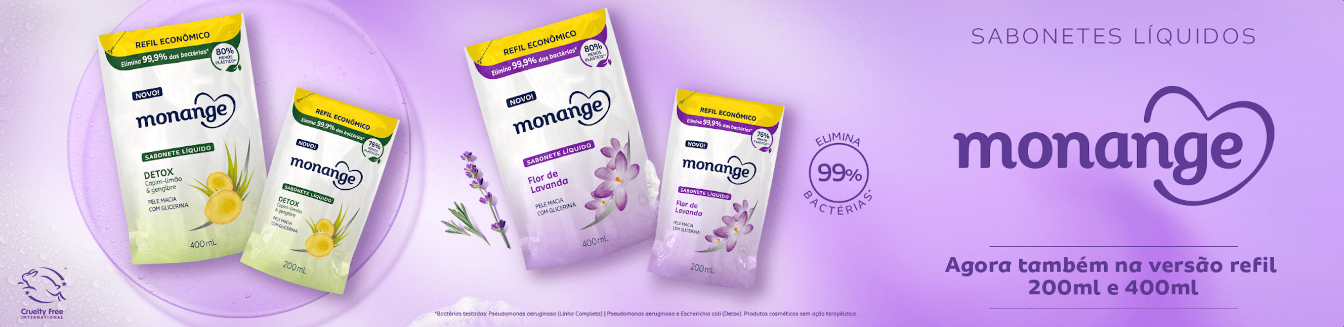 Oferecendo economia e preocupação ambiental, Monange apresenta os sabonetes líquidos em duas opções de refil, de 200ml e 400ml, sendo a menor para proporcionar mais praticidade, enquanto a maior reforça o posicionamento de acessibilidade, com melhor custo-benefício.