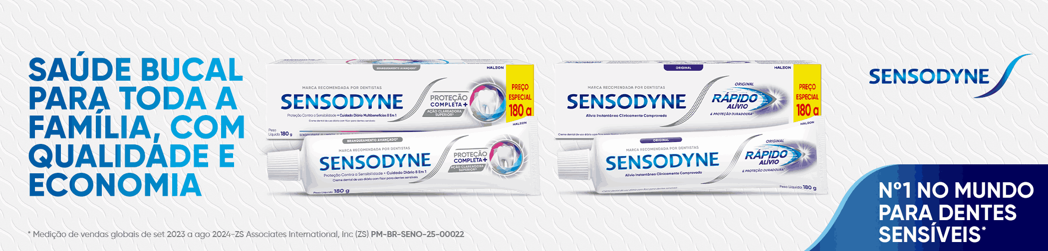 dentes sensíveis*, apresenta os novos cremes dentais 180g: