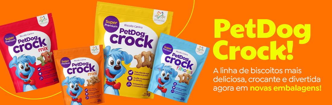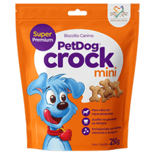 PetDog Crock - Muito saborosa, crocante e irresistível, a linha PetDog Crock é enriquecida com vitaminas, minerais e ingredientes de alta qualidade que auxiliam na prevenção ao tártaro e é livre de transgênicos.