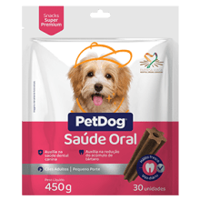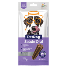 PetDog Saúde Oral - O petisco PetDog Saúde Oral é formulado especialmente para auxiliar na saúde oral de cães adultos de todos os portes. Possui textura e formato diferenciados que estimulam a mastigação, e ajudam a manter os dentes limpos, saudáveis e fortes.