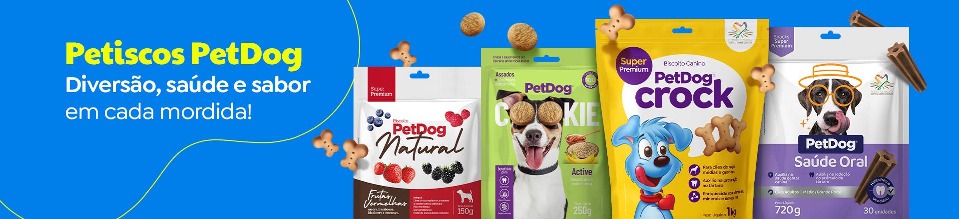 PetDog Cookie - A linha PetDog Cookie é repleta de ingredientes nobres e selecionados que trazem benefícios para a pelagem e saúde oral e intestinal dos cães. Cookies assados, crocantes, extremamente saborosos e livres de transgênicos. Uma linha divertida e cheia de nutrição.