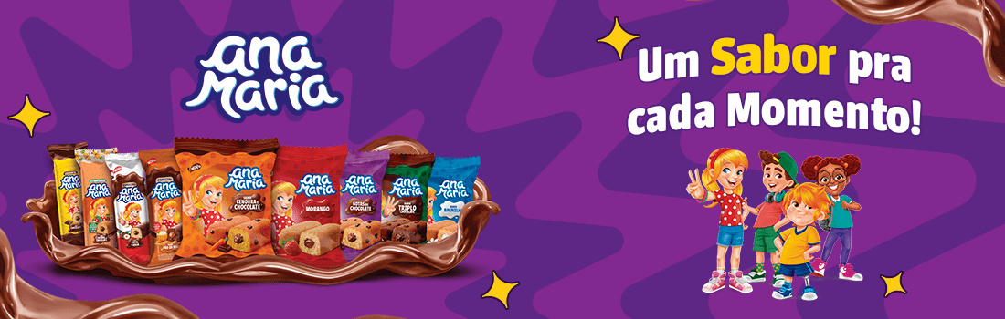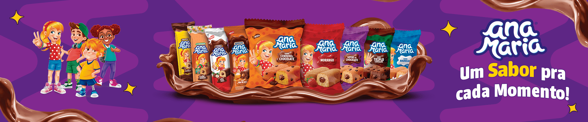 A Ana Maria nasceu em 1976, mas para ela o tempo não passa. Aquele sorrisão aberto continua sendo o retrato de uma infância deliciosa! O nome da marca é uma linda homenagem do nosso fundador à sua filha, uma menina tão doce quanto o sabor inigualável dos nossos bolinhos. Desde então, a Ana Maria cresceu mantendo a mesma essência: ser a companhia perfeita para os momentos mais doces da vida.