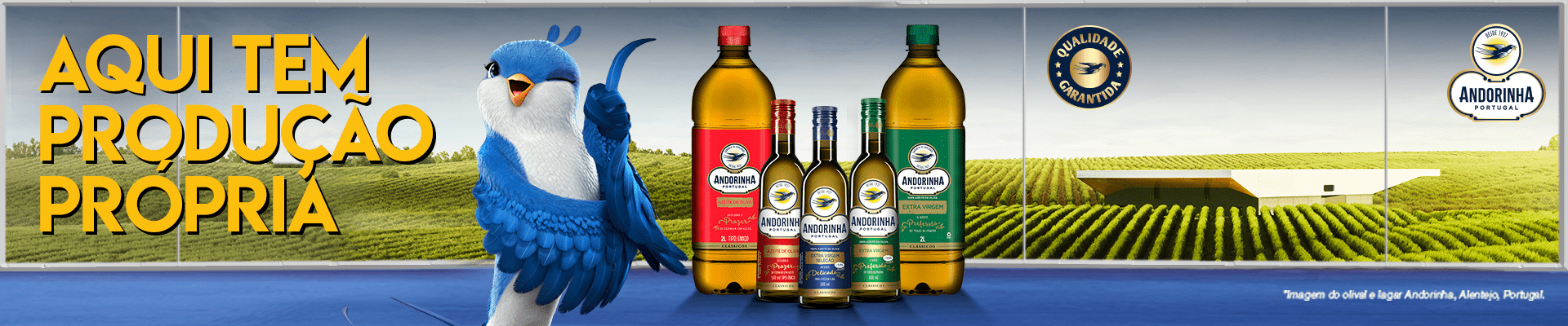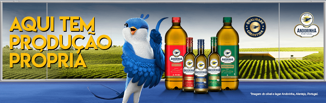 Nós somos o Azeite Andorinha, uma marca com quase 100 anos de experiência e credibilidade, que produz azeite de forma muito sustentável, garantindo a melhor qualidade e sabor para os seus produtos.