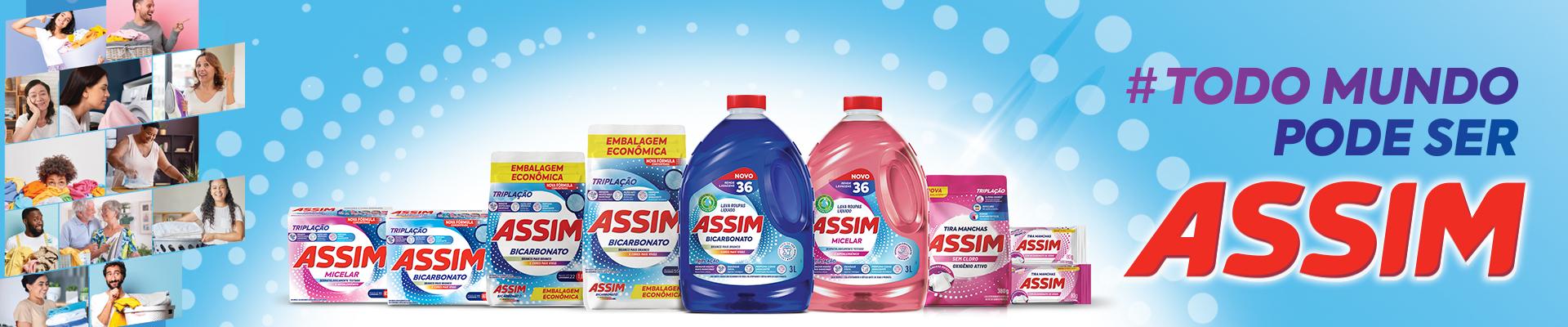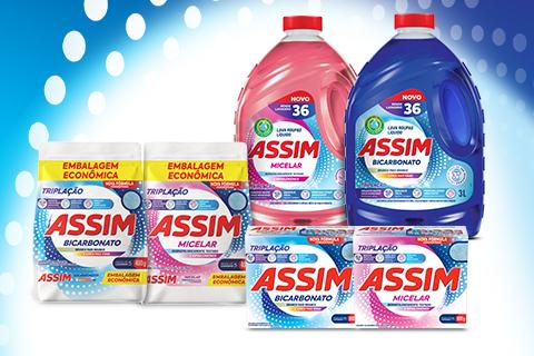 A marca Assim é especialista no cuidado das roupas, oferecendo produtos práticos, de qualidade e acessíveis para muito mais pessoas. Pensada para o dia a dia das famílias brasileiras, ela combina excelente desempenho de limpeza, fragrâncias agradáveis e ótimo custo-benefício, tornando o cuidado com as roupas mais simples e eficiente.