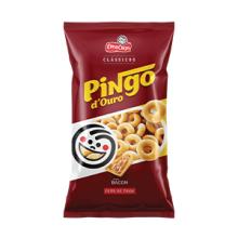 Snack a base de trigo da linha Elma Chips ®.Lançado em 1986, Pingo D’Ouro ®, é um snack tradicional a base de trigo da linha Elma Chips® disponível nos sabores: bacon e picanha.
