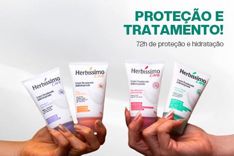 Desodorante em Creme: O clássico potinho Herbíssimo, aprimorado com extrato da casca de salgueiro branco (antimicrobiano) e melaleuca (prevenção de odores).