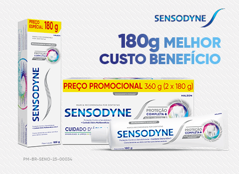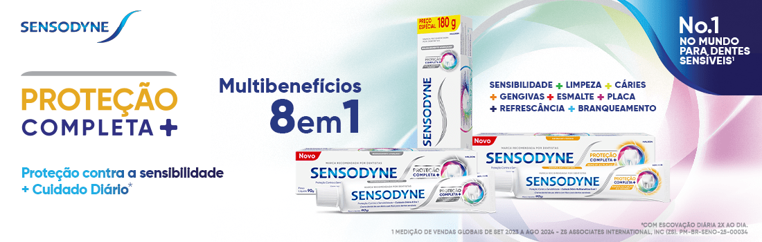 Há mais de 60 anos, Sensodyne, a marca número 1 no mundo para dentes sensíveis¹, desenvolve soluções para quem sofre com o desconforto da sensibilidade. Com um portfólio completo para cada necessidade, nossos cremes dentais em embalagens de 180g, como Proteção Completa+, com cuidado diário multibenefícios 8 em 1 para a saúde bucal, garantem o melhor custo-benefício, proporcionando alívio prolongado da sensibilidade e cuidado eficaz².