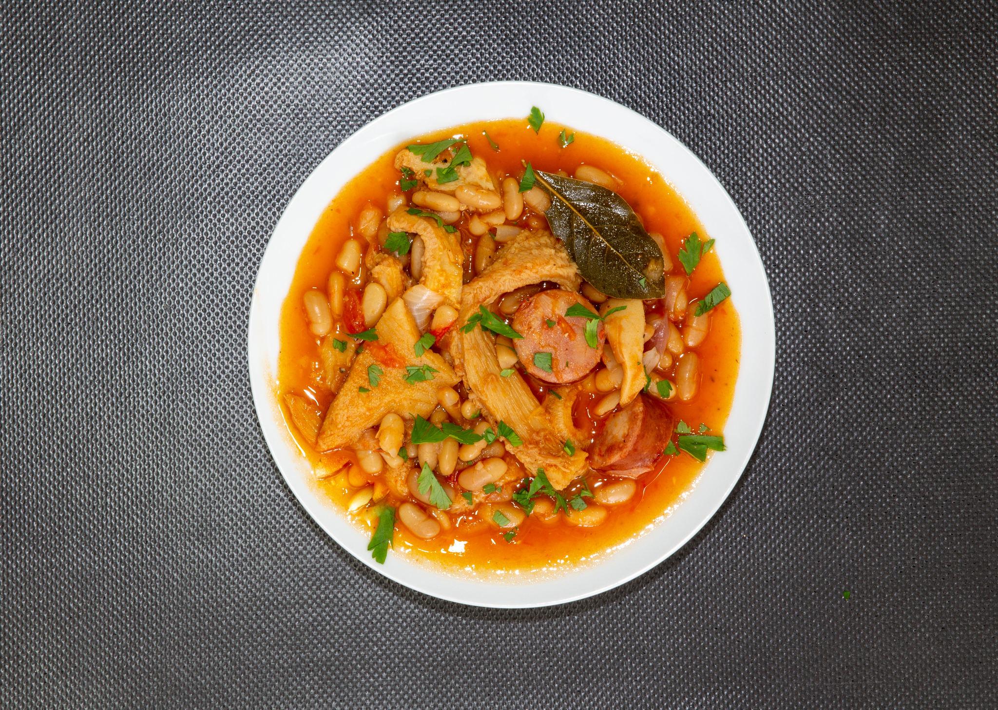 O feijão branco, tão usado em sopas, saladas e cozidos, é servido com dobradinha (ou buchada) e mocotó, receitas que chegaram ao Brasil vindas da tradição portuguesa. Consumidos em diferentes regiões, os dois pratos são iguarias que aproveitam partes menos nobres do boi – o bucho ou estômago e o pé -, e que ganham riqueza de sabor com temperos e o feijão como coadjuvante.