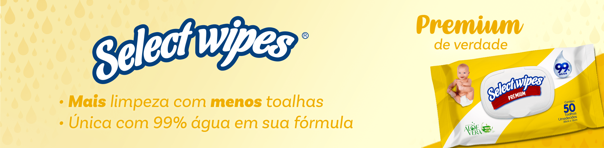 Como as toalhas umedecidas Select Wipes retém mais água, elas se assemelham ao processo de lavagem além de contar com a Tecnologia Spunlace, que mantém maior integridade do tecido, tornando as toalhas mais grossas e resistentes e evitando sujeira na hora da limpeza do bebê.