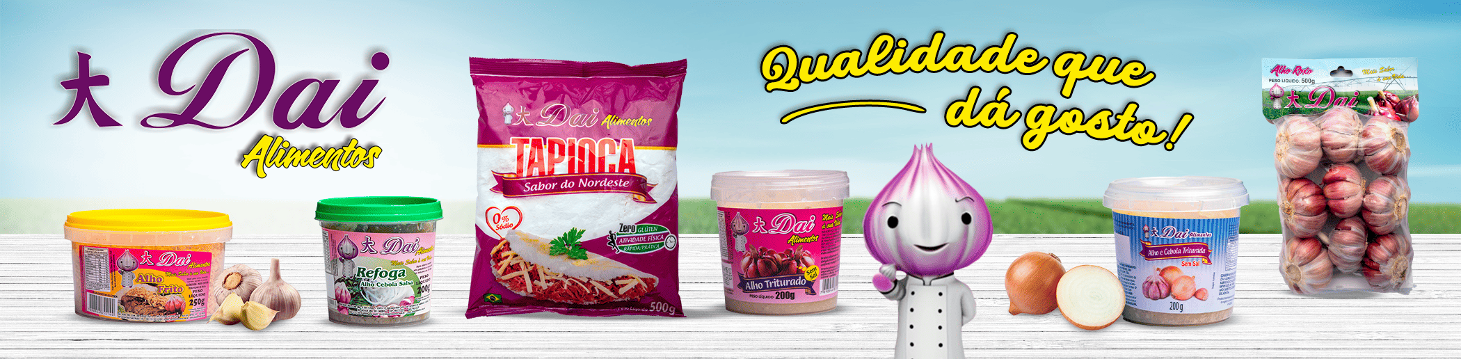 Há mais de 20 anos no mercado, a Dai Alimentos é especializada em alhos e temperos, tendo uma variedade de produtos para agilizar seu tempo no seu negócio, ou em casa.