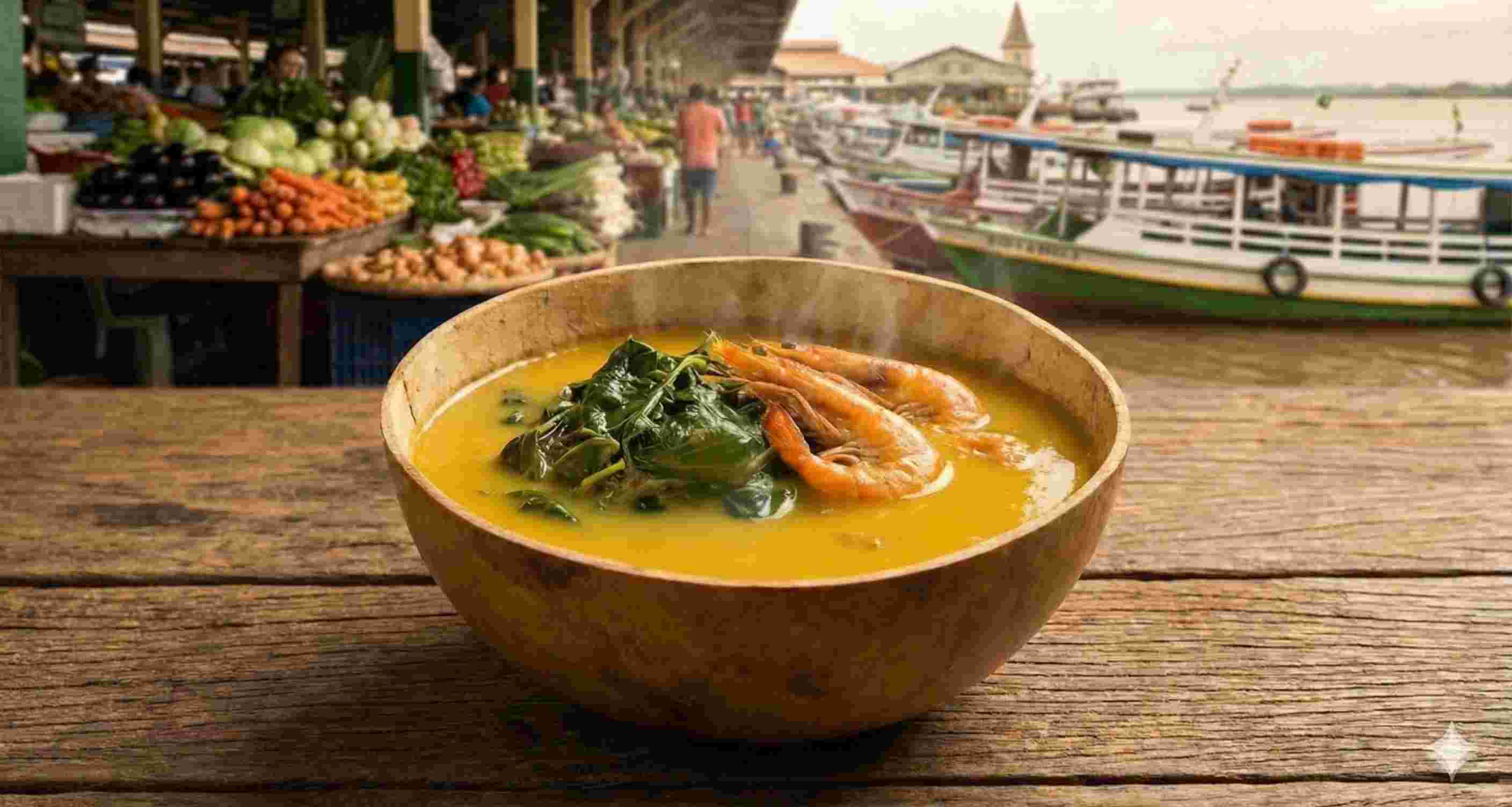 Uma das iguarias mais famosas do Pará, o tacacá lembra uma sopa, mas tem personalidade própria. O prato leva tucupi (caldo amarelo da mandioca-brava), jambu, camarão seco e goma de tapioca. É consumido direto da cuia, sem o uso de colher.