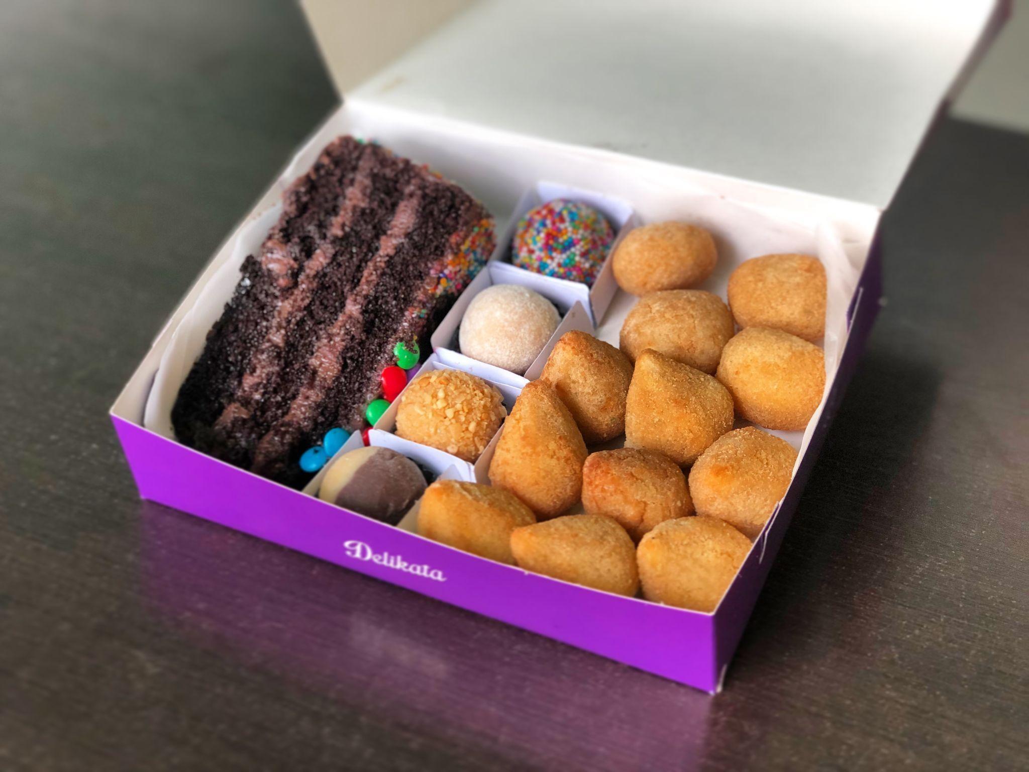 - Até seis unidades de docinhos: brigadeiro, beijinho de coco, cajuzinho e dois amores