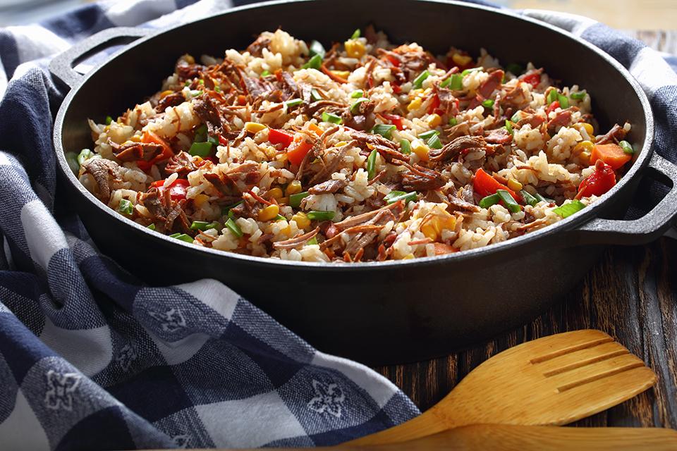 Essa versão de arroz de carreteiro do Piauí tem origem desconhecida. É uma mistura de arroz com carne-seca, pimentão, tomate e o que mais se puder acrescentar.