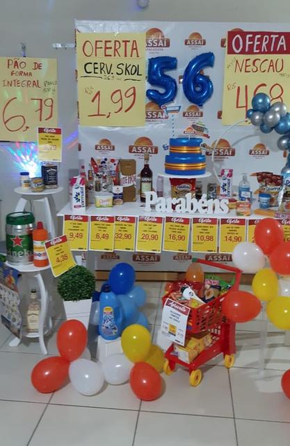 O aniversário que, originalmente, é dia 20 de maio, foi festejado no dia 8 de julho, na garagem de casa. Maria Elizabete e as filhas prepararam os bolos – um real e um de mentirinha –, pintaram os cartazes grandes com a indicação de promoções Assaí e usaram cartazes promocionais de menor tamanho, cedidos pela loja, para a decoração.