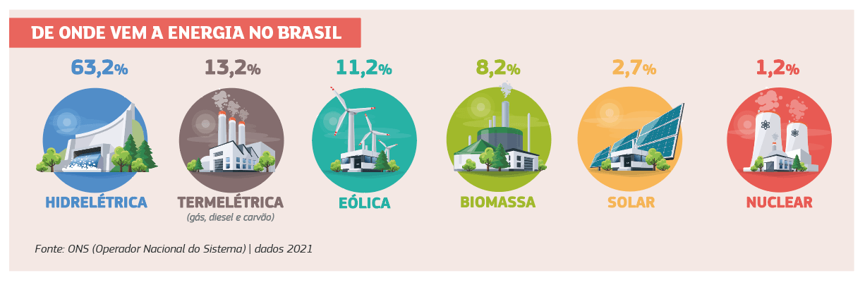 As usinas hidrelétricas há muitos anos são a principal fonte de geração de energia elétrica no país. Os reservatórios têm capacidade de armazenamento, porém a falta de chuvas fez com que o volume de água sofresse forte redução.