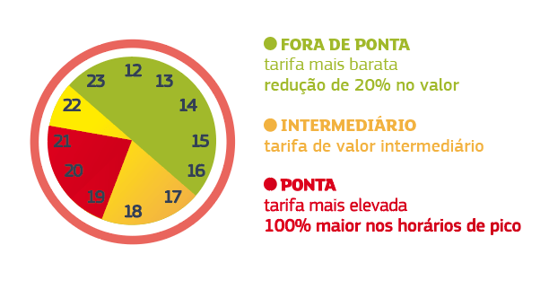 Nesse modelo tarifário, o preço pago varia conforme determinados horários. Nos dias úteis, são cobrados três valores diferentes de tarifa. Em fins de semana e feriados nacionais, o valor é sempre da tarifa Fora de Ponta. O horário de pico vai das 17h às 22h.