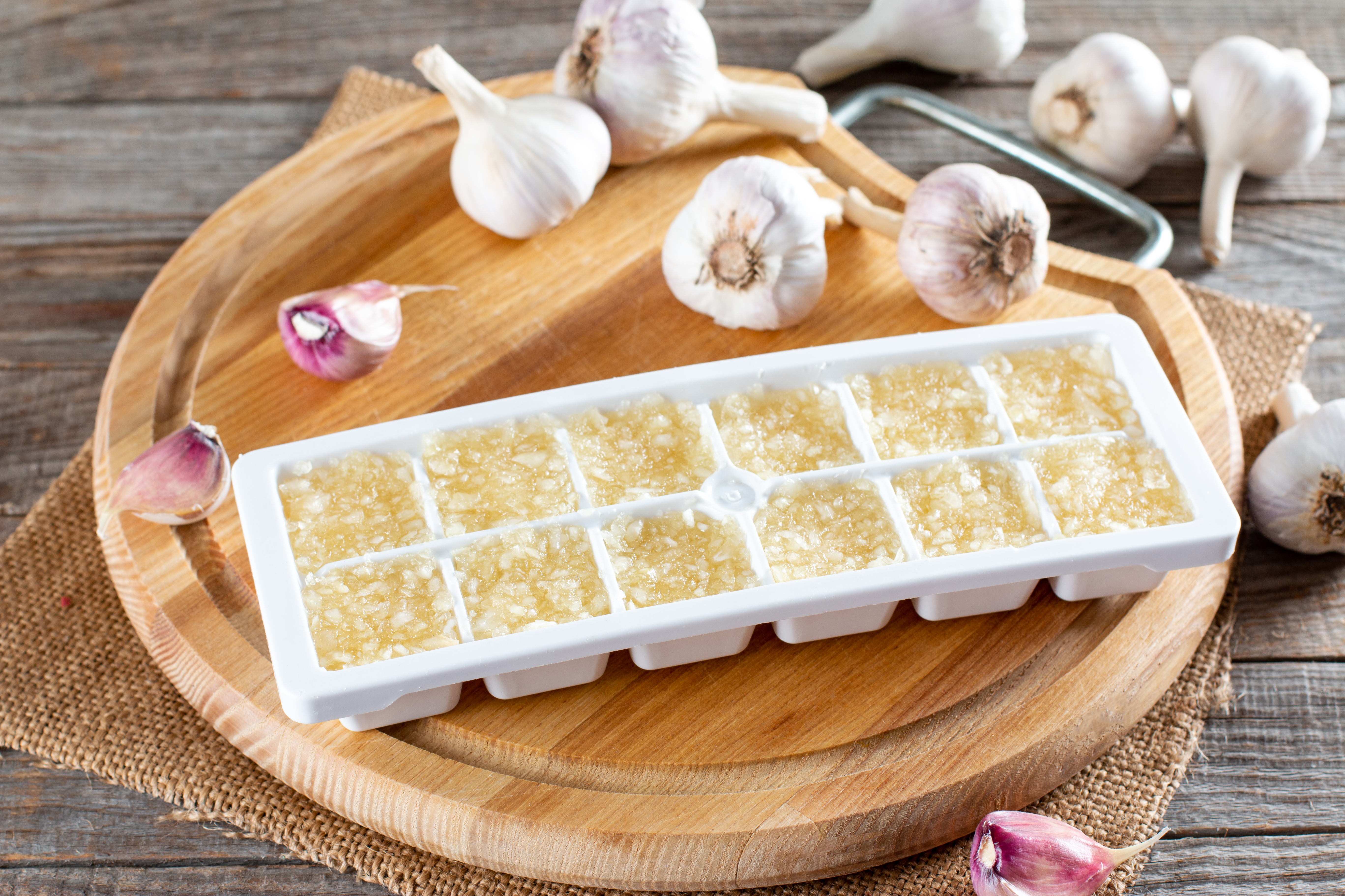 Bater os ovos com um garfo antes de congelar e colocar em forminhas de gelo ou potes pequenos.