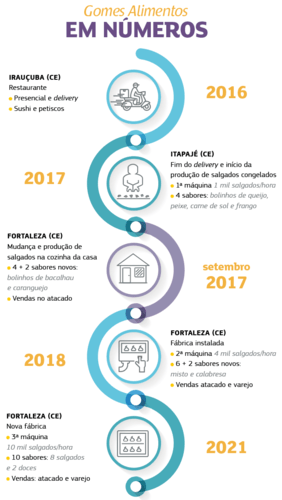 Eu e meu marido, Thauser Gomes, começamos a vida de casados morando com meus sogros em Irauçuba (CE). Ali, abrimos um delivery de sushi e, na busca de comprar minissalgados congelados para petiscos, não encontramos fornecedores próximos.