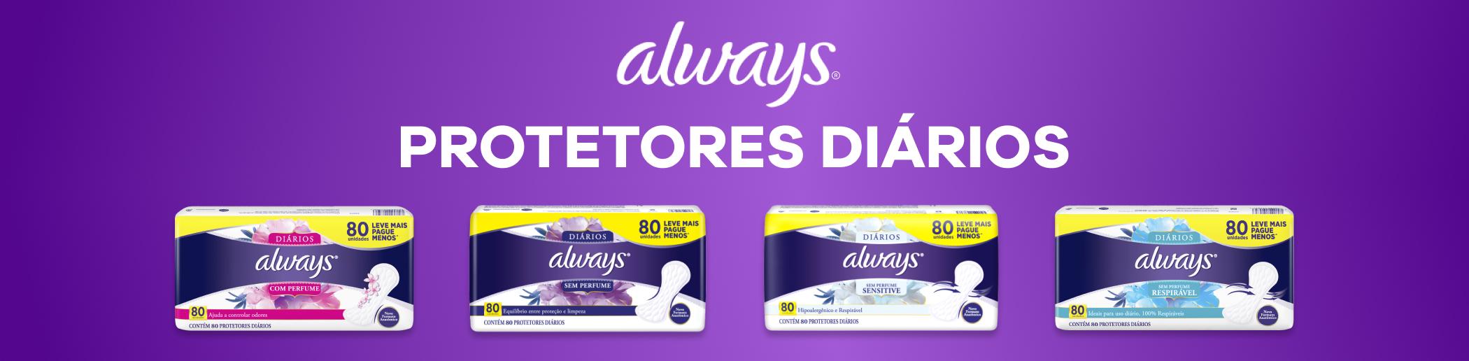 Os protetores diários da Always oferecem proteção contínua além do ciclo menstrual